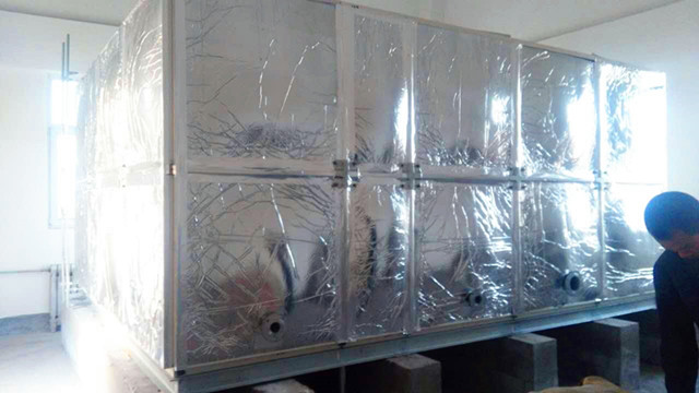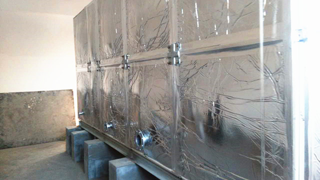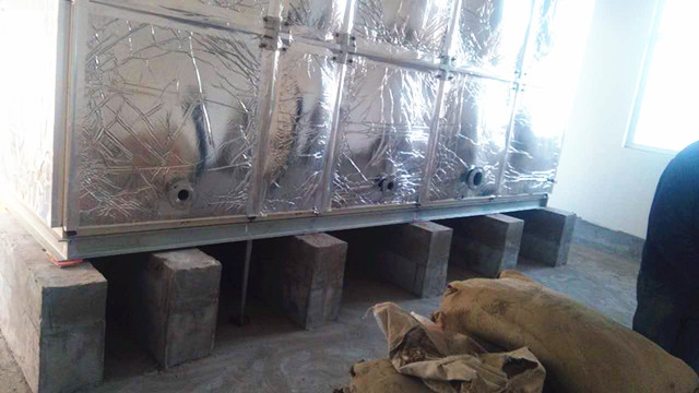 此水箱外圍為鋁箔布橡塑保溫,客戶在找到我們時根本不了解水箱保溫情況,只告訴我們水箱是在學(xué)校用,供學(xué)校學(xué)生用水。水溫要保存好才行。經(jīng)過我們的了解,我公司向客戶提供使用玻璃鋼材質(zhì),外加橡塑保溫。水箱材質(zhì)用水既安全、衛(wèi)生又耐用,用個十多年沒問題,而且橡塑保溫價格便宜,水溫在24小時之內(nèi)能保持10-30度左右是沒有問題的