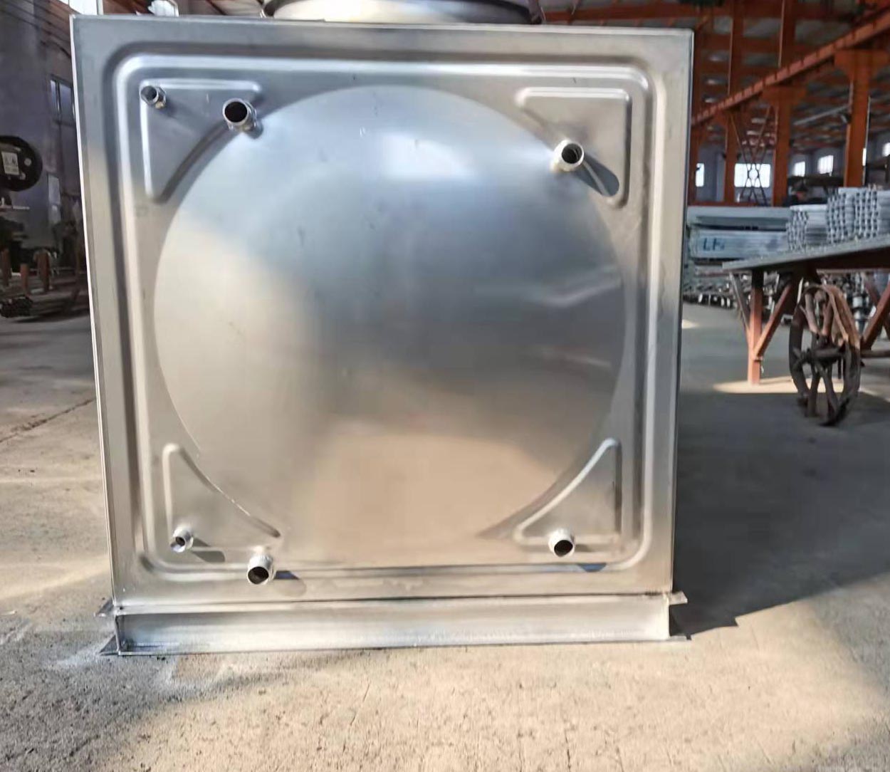 水箱基礎(chǔ)可采用混凝土條形梁,或工字鋼。水箱頂部對(duì)角設(shè)有透氣空氣過(guò)濾裝置。水箱內(nèi)部均使用拉筋。各管口法蘭均為1.0MPa標(biāo)準(zhǔn)法蘭。